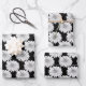 Three sets of black and white daisies on a black background. Wrap up a special gift with this lovely design.