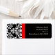 Black and white damask swirl labels with red. Fully Customisable. Matching wedding stationery is available from this store.