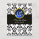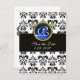 BLACK AND WHITE DAMASK BLUE SAPPHIRE MONOGRAM ANNOUNCEMENT POSTCARD