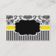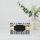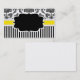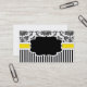 Elegantly presented business card having a black and white damask background with a yellow band. A label in the centre is available for text.
