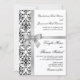 Black and White Damask Faux Silver Ribbon Wedding Invitation