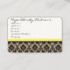Black and White Damask Floral with Yellow Thick Ribbon-Custom Business Cards