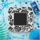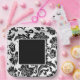 Black and white damask formal wedding paper plate