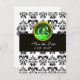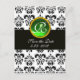 BLACK AND WHITE DAMASK GREEN EMERALD MONOGRAM ANNOUNCEMENT POSTCARD