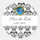 BLACK AND WHITE DAMASK MONOGRAM blue sapphire Classic Round Sticker