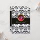 BLACK AND WHITE DAMASK MONOGRAM,red ruby,fuchsia Invitation
