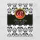BLACK AND WHITE DAMASK RED RUBY MONOGRAM ANNOUNCEMENT POSTCARD