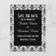 Pretty stylish modern white and black retro vintage damask pattern, stylish elegant formal traditional wedding save the date, easily personalise the bride and grooms names to the templates to create a unique custom tying the knot save the date for your special marriage occasions and celebrations. Visit the PERSONALIZED_ WEDDINGS STORE for matching coordinated wedding sets. CUSTOMIZE to adjust the text and font.