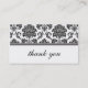 Say thank you in style with these elegant black and white damask thank you cards. Size is that of a business card. Could be customised to a larger card if requested.
