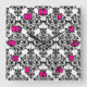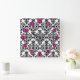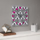 Pretty damask pattern in black and white with hot pink numbers. This wall clock is so beautiful! Hang it in the library, den, beach house, or office. This clock would make a unique housewarming or boatwarming (or houseboat warming) gift. Available in two sizes of round clock, or a square clock. Copyright Scarebaby Design.