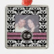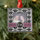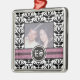 Black and white damask wedding photo ornament featuring your precious photo framed in black and white damask pattern black and pink bands and your initials in a circle.