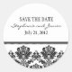 Black and White damask monogram wedding sticker which can be used as an invitation seal.