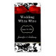 Elegant mini wedding wine labels ready for you to personalise with your own information. Graphic artwork of a black label, with a black and white damask design on top and bottom. Silver tone stripes and a pretty red bow decorate this beautiful label. Great for your wedding reception or your home made wines. Matching wedding products available.