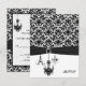 This black and white damask with chandeliers reply card has a PRINTED ON ribbon and jewels on it that matches the wedding invitation shown below. If you requre any matching products, please email your request to niteowlstudio@gmail.com.