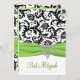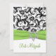 Black and White Damask with Lime Faux Ribbon Invitation