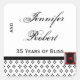 This beautiful design, called Black and White Modern Damask, would be a dramatic way to set the tone for your modern but elegant wedding anniversary party or event. The background is white with a modern black damask pattern across the the bottom. There is a black border with a faux ruby red gem.