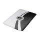 Elegant white and black dynamic shapes with floral damasks and customisable monogram inside white and black circle frame.