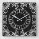 Black and white decorative square wall clock