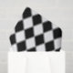 This bold black and white pattern showcases a classic diamond argyle design with a clean, high-contrast look. The repeating geometric layout alternates black and white diamonds outlined in crisp lines, creating a seamless rhythm of symmetry and balance. Its minimalist palette emphasizes the timeless elegance of argyle while giving it a modern, graphic twist. Perfect for those who appreciate bold geometry, gothic minimalism, or traditional harlequin-inspired patterns, this design captures both sophistication and striking visual impact.