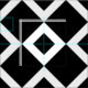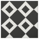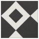 Stylish geometric fabric features a bold, graphic pattern of interlocking black and white diamond shapes. The white diamonds each contain a small black diamond making black the dominant colour of the original design.