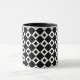 A bold, graphic pattern of interlocking black and white diamond shapes. The white diamonds each contain a small black diamond making black the dominant colour of the original design.
