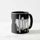 A set of simple silverware on a pretty table napkin embellished in grey on a black background. Click Customise It to add your name or message to this design, change background colours and more.