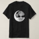 Disc golf themed t-shirt. Black and white disc golf basket and tree roots silhouette.