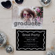 This trendy and stylish graduation party invitation features a photo of the graduate, with retro disco style typography for an up-do-date throwback look. There is room on the back of the card to add all the details about the grad party. The front of the card has stylish black text, and the back of the card is bold black and white with a trendy wavy frame.