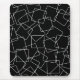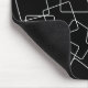 Clean and modern design of white squares that randomly lay on black background and create an assortment of geometric forms.