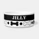 Cute black and white dog bone personalised pet bowl, customise with any pets name, change the type when you order