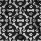 Black and White Dog Bones and Paw Prints Pattern Fabric