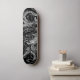 This image features a stylised, black and white dragon, intricately detailed with swirling lines and patterns. The dragon's body is depicted in a dynamic pose, with its head raised and its tail twisting. Clouds and other abstract elements surround the dragon, creating a sense of movement and energy. The overall aesthetic is traditional and oriental, suggesting a connection to Asian cultures and mythology.