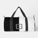 Step into a world where classic design meets contemporary flair with the "Black and White Duo Chequerboard Initials Asymmetry Duffle Bag." This striking piece reimagines the timeless charm of the chequerboard pattern with a modern twist, offering a unique and stylish way to carry your essentials. The duffle bag's black and white chequerboard design is boldly asymmetrical, creating an eye-catching visual appeal that stands out in any setting.