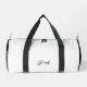 Discover the timeless elegance of the "Black and White Duo Solid Colour Initials Name Duffle Bag," a perfect blend of style and functionality for your travel needs. This duffle bag is designed for those who appreciate simplicity with a personal touch. The classic black and white colour scheme offers a sophisticated look, making it suitable for both business trips and casual outings.