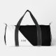 The "Black and White Duo Solid Colour Initials Name Duffle Bag" is a statement of elegance and personal style. It stands out as a unique gift idea for friends, family, or even yourself, offering a blend of practicality and personalisation.