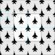 A pattern of black F-15C Eagle fighter jet silhouettes pop on a background of white and make this perfect fabric for modern nursery projects or squadron events.