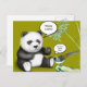 A Black And White Easter Panda talking to a pheasant standing on a rock. with a grass green background.with happy easter in black text.