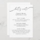 Black and White Elegant Calligraphy Wedding Menu with modern script and classic dinner menu options for guests. Personalise the text for your bar menu or add text for buffet menu.