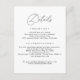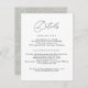 Designed to coordinate with our Romantic Script wedding collection, this customisable Details card, features a sweeping script calligraphy text paired with a classy serif font in black and a frosted sage green back with a floral line art pattern. Matching items available.