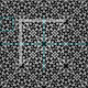 Elegant fabric design featuring a seamless pattern made of white ornaments on black background.