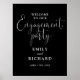 This elegant black and white script engagement welcome sign can be personalised with all your names and special date. Designed by Thisisnotme©