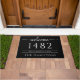 Charming and classic custom doormat features "welcome" in elegant script paired with your family’s last name, address and house number. Designed with clean stripe accents, this doormat offers a timeless look that can be personalised to match your entryway.