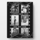 Film reels evoke feelings of nostalgia, this classic black and white design allows you to upload 6 photographs of treasured memories with your own message across the centre. Detailed with curved film reels at the sides. Looks great with black and white or coloured photographs.