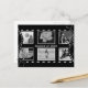 Film reels evoke feelings of nostalgia, this classic black and white design allows you to upload 6 photographs of treasured memories with your own message across the centre. Detailed with curved film reels at the sides. Looks great with black and white or coloured photographs.