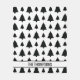 Destei's original pattern of simple black Christmas fir tree silhouettes on a white background colour. There is also a personalizable text area for a family name or other custom text. This design was created with the modern minimalist aesthetic in mind.