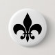 This simple black and white button is accented with a fleur de lis, making it a perfect accessory for your next mardi gras.