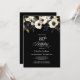 Invite your friends and loved ones to your 80th birthday with this stylish invitation, featuring a black and white flowers on a black background. The customisable text area in this invitation template allows you to effortlessly include all the necessary details for your special birthday celebration, including the date, time, venue, and RSVP information. A variety of paper types and corner styles are available for your unique invitations, along with the option to download if you prefer a digital format.