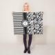 Black And White Floral Damask & Stripes-Monogram Fleece Blanket