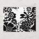 Black and White Floral Garden Graphic Pattern Postcard