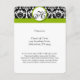Vintage Modern Black and White Floral Damask Patterns with Apple Green Trim Wedding Direction Card Invitations. Perfect for Rococo Baroque, Mediaeval Renaissance, Art Deco Art Nouveau, Roaring 20s Gatsby, Victorian Weddings or Elegant Farmhouse Wedding Themes Venues.